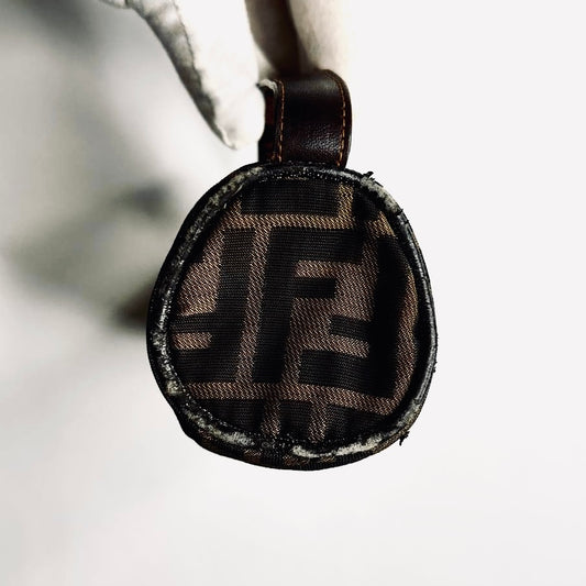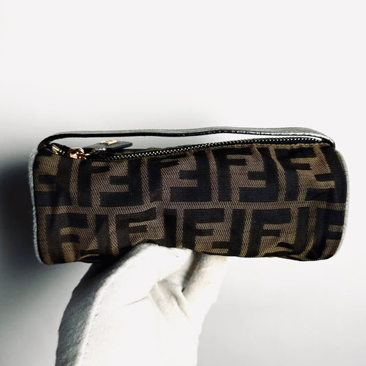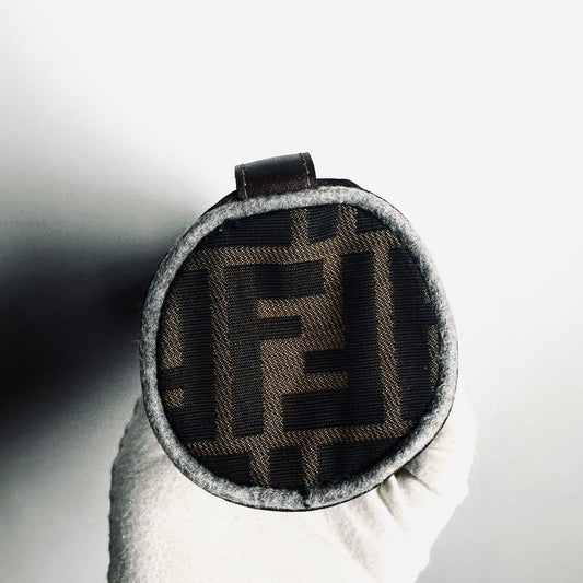 Fendi Zucca Brown GHW FF Monogram Logo Roller Pochette Accessories Hobo Mini Bag