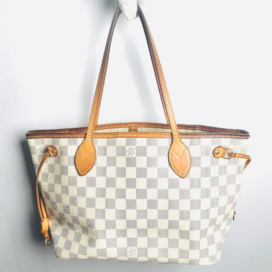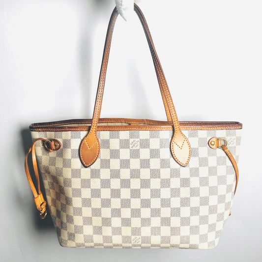 Louis Vuitton LV Neverfull PM Damier Azur DA Monogram Logo GHW Shopper Shoulder Tote Bag