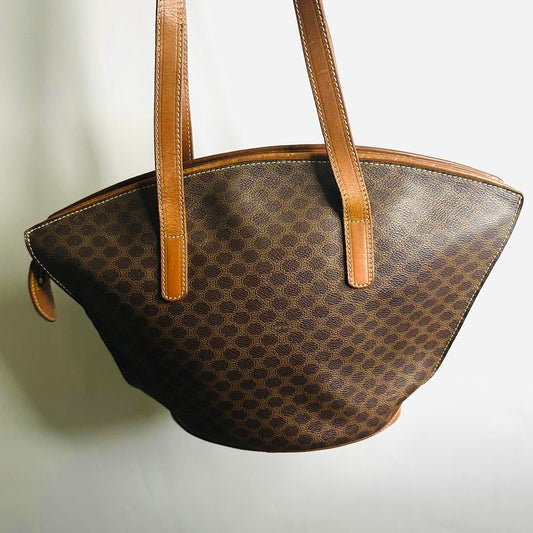 Celine Eclipse Triomphe Macadam Monogram Logo GHW Structured Vintage Shoulder Shopper Tote Bag