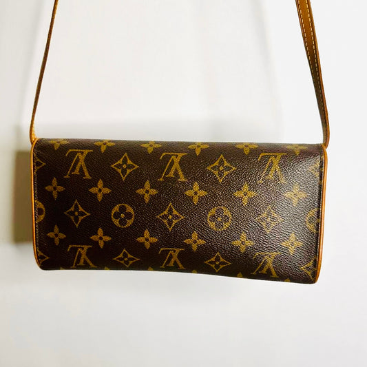 Louis Vuitton LV Pochette Twin GM Monogram Logo GHW Shoulder Sling Bag Clutch Pouch