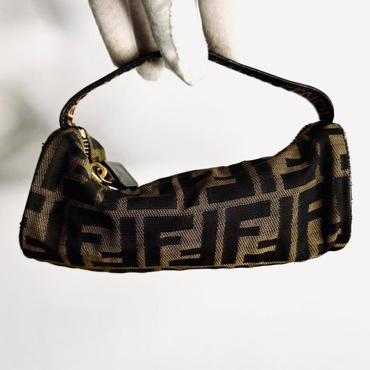 Fendi Zucca Roma Brown GHW FF Monogram Logo Roller Pochette Accessories Hobo Mini Bag