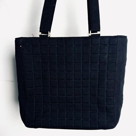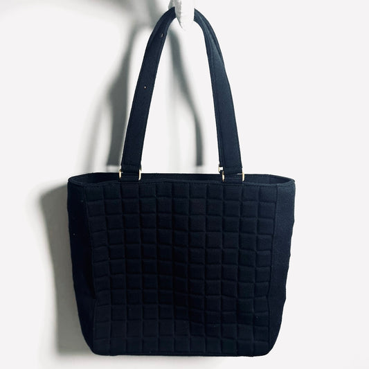 Chanel Black GHW Giant CC Monogram Logo Chocolate Bar Quilted Jersey Fabric Vintage Shopper Shoulder Tote Bag 7s
