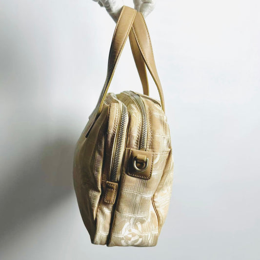 Chanel Beige Travel Line Quilted Jacquard Monogram Logo 2-Way Shoulder Shopper Tote Bag 6s