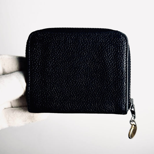 Chanel Black GHW CC Giant Monogram Logo Caviar Vintage Compact Zippy Zip Around Coin Purse Pouch Wallet 4s