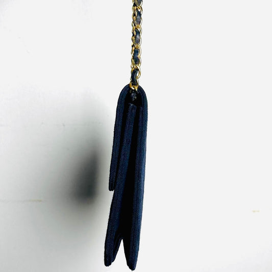 Chanel Navy Blue GHW Quilted Jersey Fabric CC Logo Vintage Small Square Flap Shoulder Sling Bag Pre Series