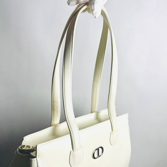 Christian Dior CD White 30 Montaigne Leather Shoulder Shopper Tote Bag