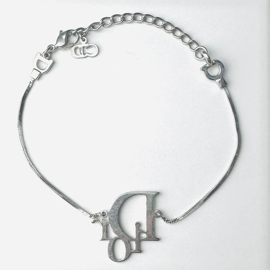 Christian Dior CD Monogram Logo Charms Signature Classic Silver Chain Vintage Bracelet