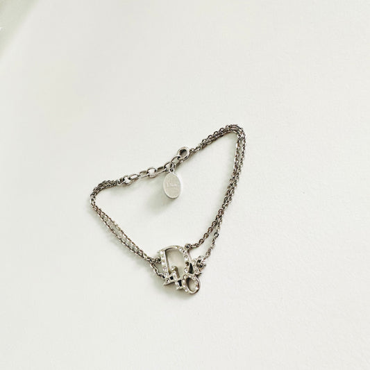 Christian Dior CD Monogram Logo Signature Classic Silver & Crystals Vintage Bracelet