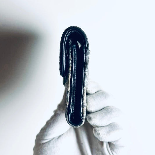 Christian Dior CD Saddle Lotus Navy Blue GHW Oblique Monogram Logo Flap Trifold Compact Wallet