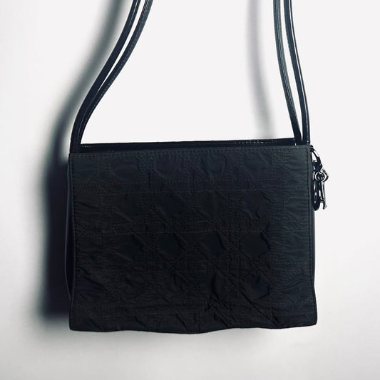 Christian Dior CD Black Lady Dior Cannage Quilted Fabric Monogram Logo Shoulder Shopper Tote Bag