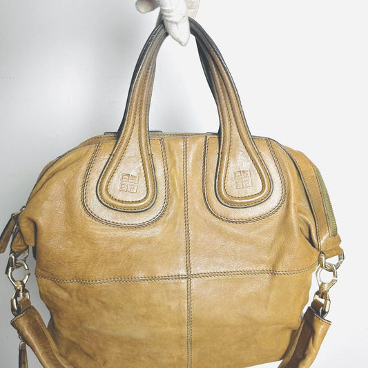 Givenchy Nightingale Caramel Brown GHW Leather Monogram Logo 2-Way Shoulder Sling Top Handle Tote Bag