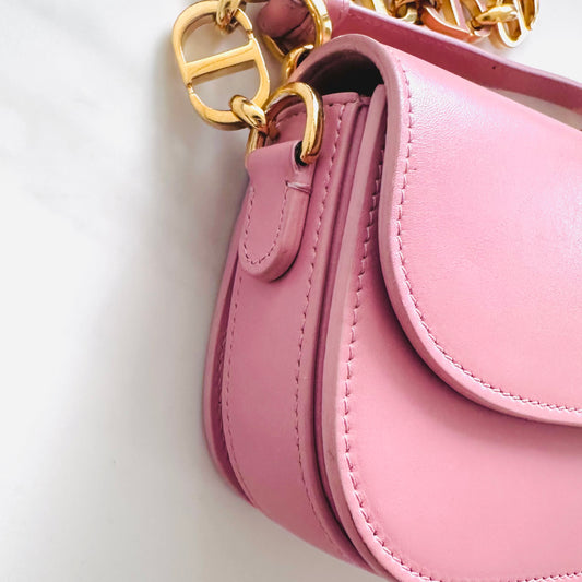 Christian Dior CD 30 Montaigne Avenue Small Pink GHW Monogram Calfskin Leather Flap Chain Shoulder Sling Bag