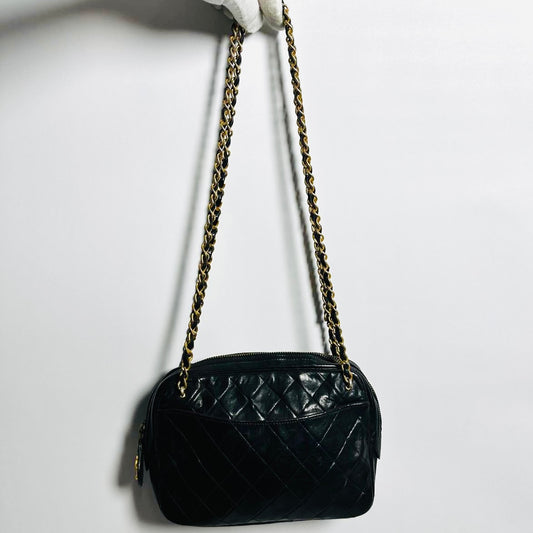 Chanel Black GHW Quilted Lambskin CC Monogram Logo Charm Chain Vintage Shoulder Sling Bag