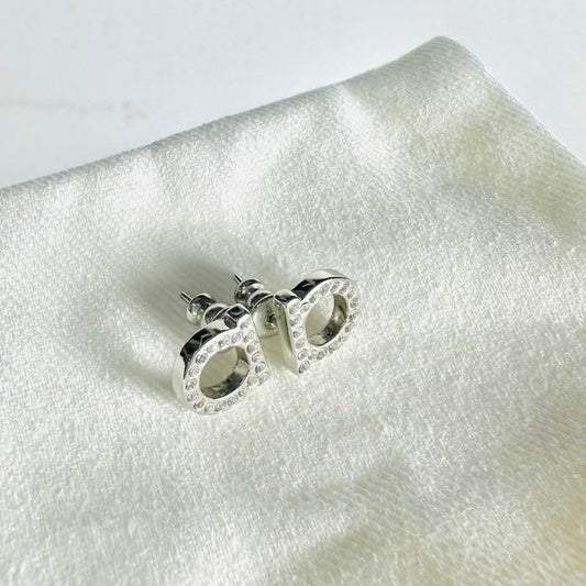 Salvatore Ferragamo Gancini Monogram Logo Silver & Crystals Stud Earrings