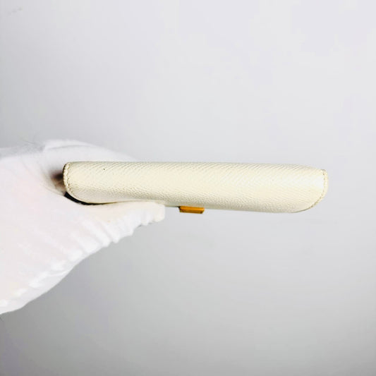Celine White / Tan GHW Grained Calfskin Leather Logo Medium Strap Compact Bifold Wallet