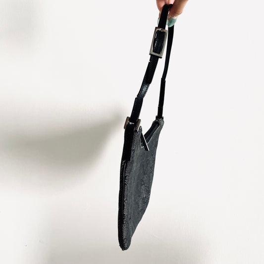 Prada Grey / Navy Blue Tessuto Sport Classic Monogram Logo Nylon Hobo Pochette Baguette Shoulder Bag