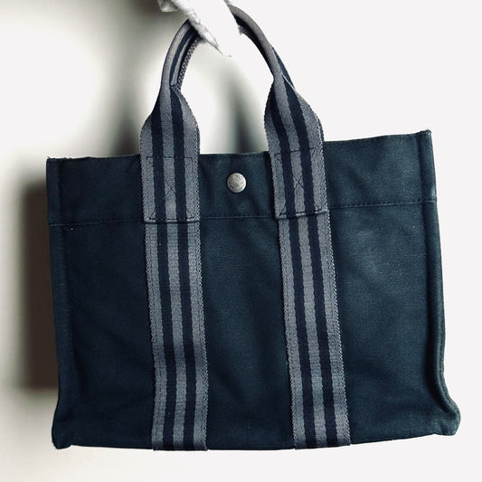 Hermes Navy Blue Herline Fourre Fool Toile PM Structured Shopper Tote Bag