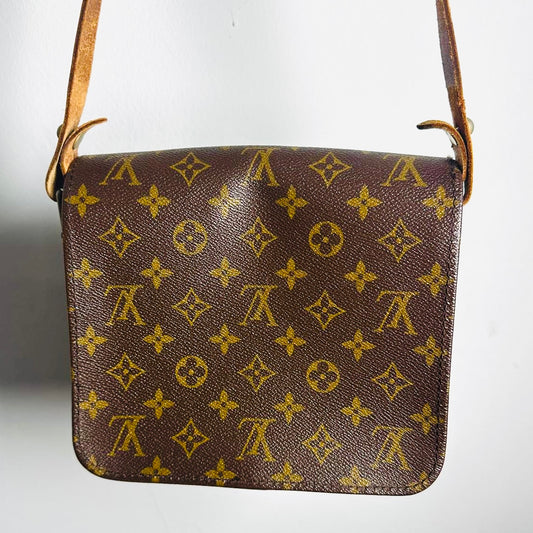 Louis Vuitton LV Cartouchiere Monogram Logo GHW Flap Vintage Shoulder Sling Bag