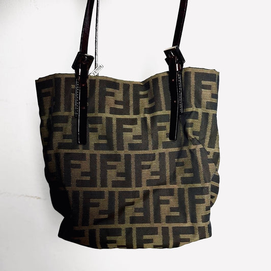 Fendi Brown FF Monogram Logo Zucca Zucchino Shopper Shoulder Tote Bag