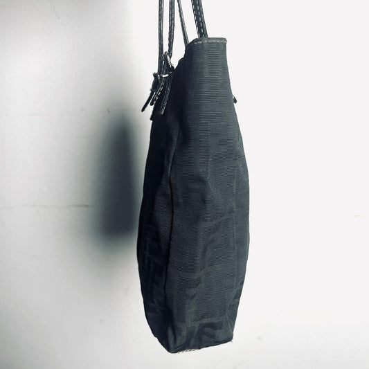 Fendi Black Zucca FF Monogram Logo Shopper Shoulder Tote Bag