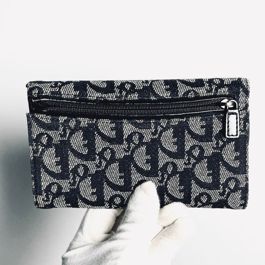 Christian Dior CD Black Saddle Oblique Monogram Logo Flap Trifold Wallet