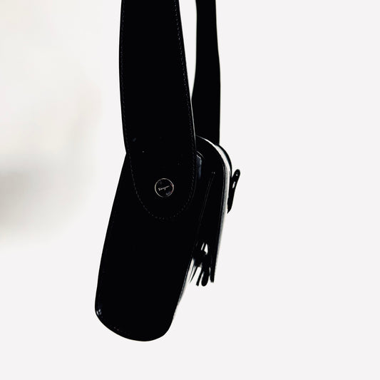 Salvatore Ferragamo Vara Black Bow Patent Leather Flap Hobo Shoulder Sling Bag