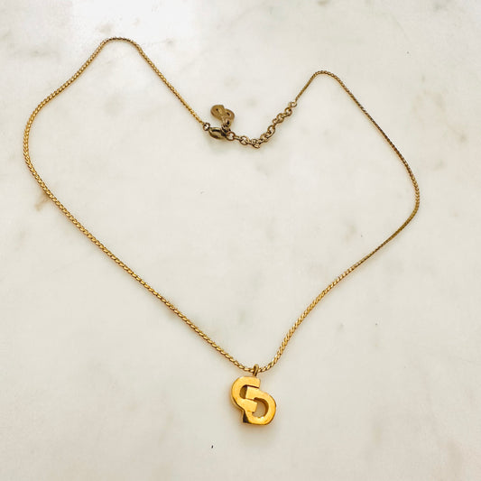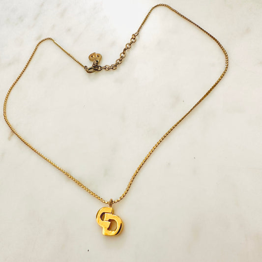 Christian Dior CD Monogram Logo Signature Classic Gold Vintage Necklace