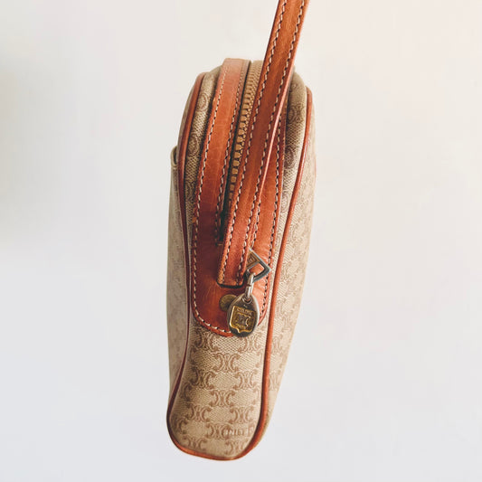 Celine Beige Triomphe Macadam Monogram Logo Mini Vintage Shoulder Sling Bag