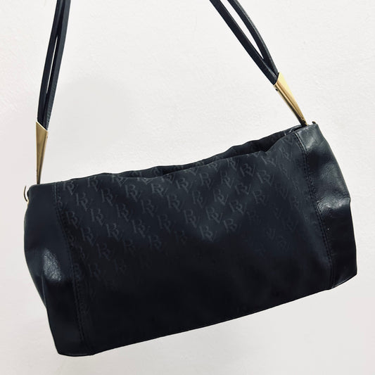 Bottega Veneta BV Black GHW Monogram Logo Hobo Baguette Pochette Shoulder Bag