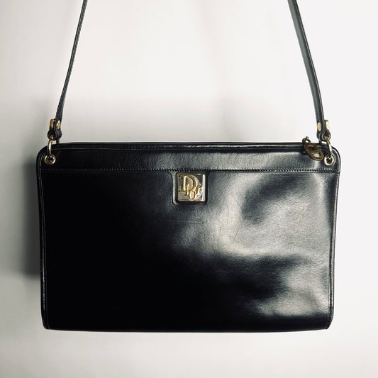 Christian Dior CD Black GHW Monogram Logo Leather Vintage Zip Shoulder Sling Bag