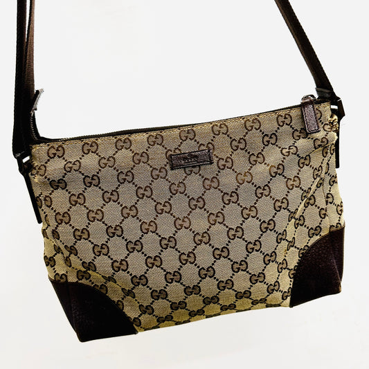 Gucci Beige / Dark Brown GG Monogram Logo Shoulder Sling Bag