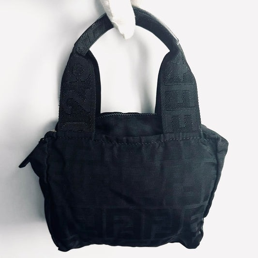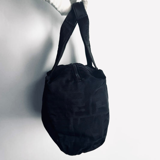Fendi Roma Black Zucca FF Monogram Logo Mini Bucket Dumpling Zip Tote Bag