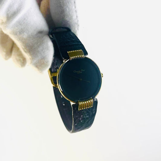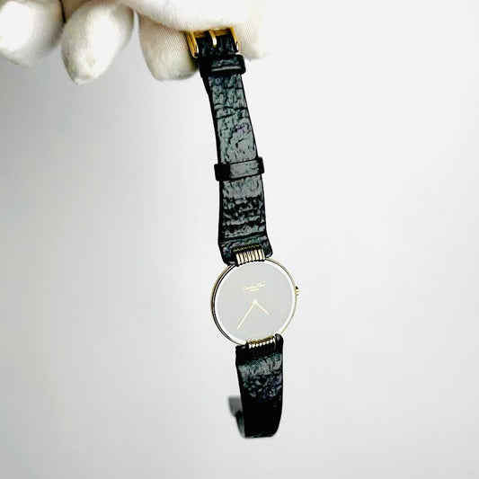Christian Dior CD Bagira Monogram Logo 26MM Black Leather Strap GHW Quartz Watch