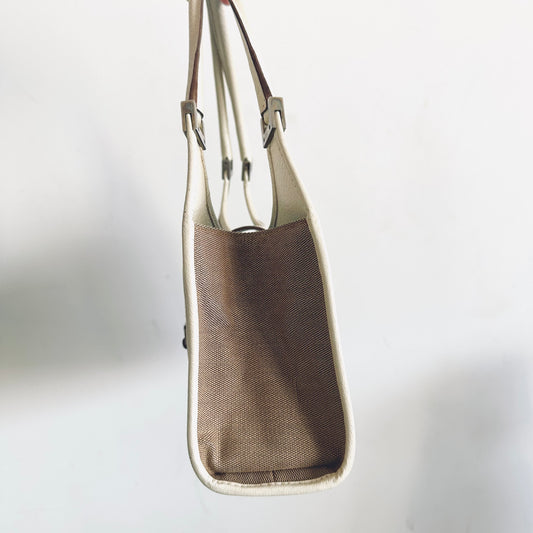 Celine Beige Triomphe Macadam Monogram Logo Vintage Drawstring Bucket Shoulder Sling Bag
