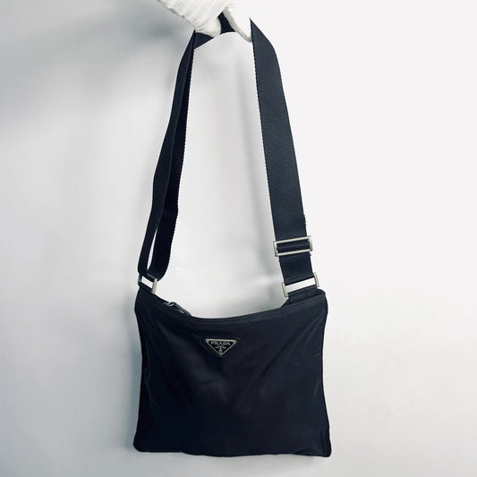Prada Black Tessuto Monogram Logo Classic Nylon Zip Shoulder Sling Bag