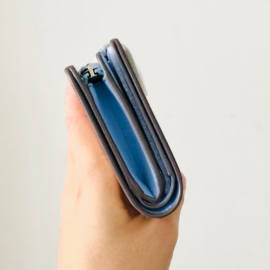 Coach Signature Monogram Canvas / Periwinkle Leather Medium Corner Zip Around Zippy Flap Compact Bifold Wallet
