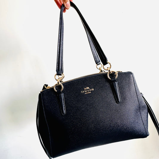 Coach Midnight Navy Blue Christie Satchel Carryall 2-Way Top Handle Shoulder Sling Crossgrain Leather Tote Bag