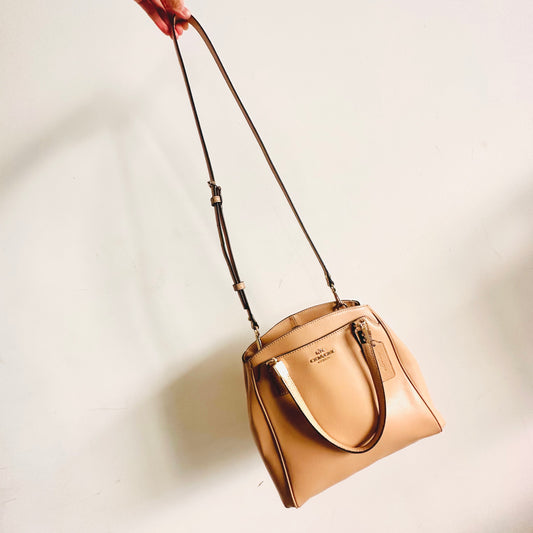 Coach Blush Pink Beige Minetta Satchel Carryall 2-Way Top Handle Shoulder Sling Crossgrain Leather Tote Bag