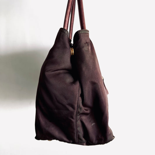 Prada Burgundy Maroon GHW Tessuto Classic Logo Nylon Structured Shopper Shoulder Tote Bag
