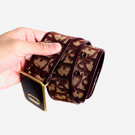 Christian Dior Maroon Red GHW Oblique Monogram Logo Iconic Classic 35MM Belt