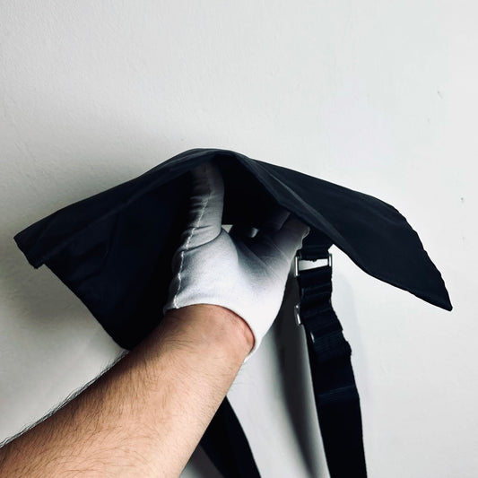Prada Black Monogram Logo Tessuto Nylon & Leather Zip Flat Shoulder Sling Bag
