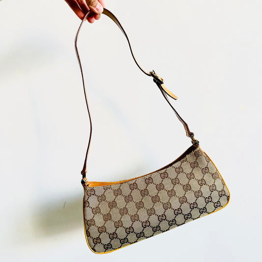 Gucci Beige / Tan GG Monogram Small Hobo Baguette Pochette Shoulder Bag