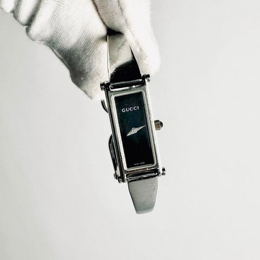 Gucci Black Rectangular Dial Stainless Steel Bracelet Bangle 12MM 1500L Watch