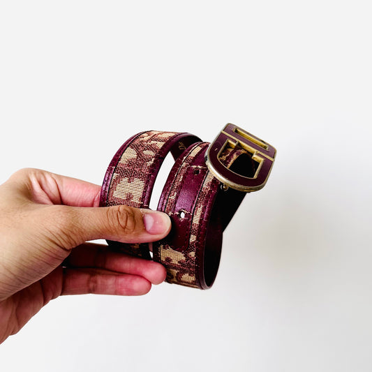 Christian Dior Maroon Red GHW Oblique Monogram Logo Iconic 35MM Belt
