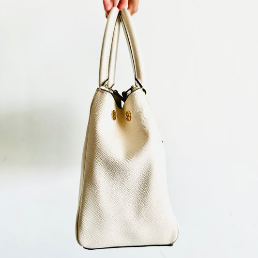 Coach White GHW Surrey Carryall Top Handle Shoulder Crossgrain Leather Bag