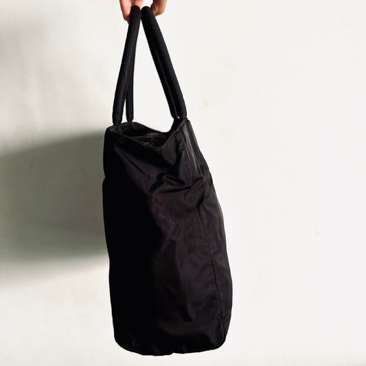Prada Dark Brown Tessuto City Classic Logo Nylon Structured Shopper Zip Shoulder Tote Bag