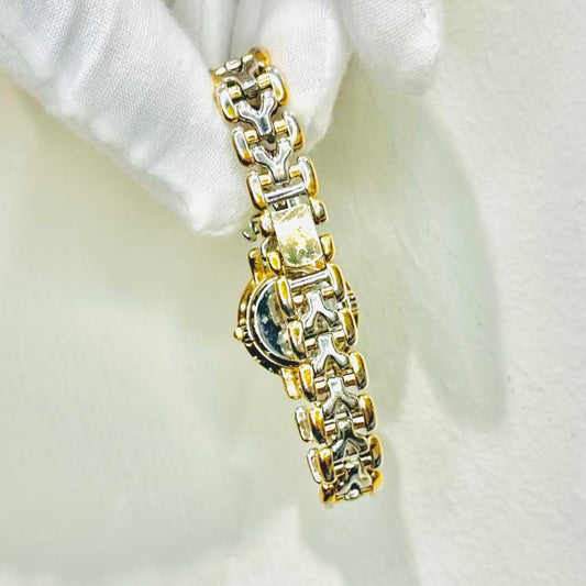 YSL Yves Saint Laurent Round Dial Gold & Stainless Steel Monogram Logo 22MM Quartz Watch