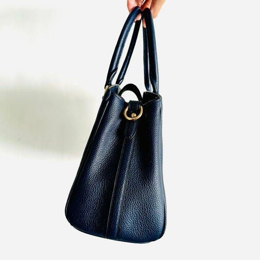 Coach Navy Blue GHW Empire Carryall 2-Way Top Handle Shoulder Sling Pebbled Leather Tote Bag