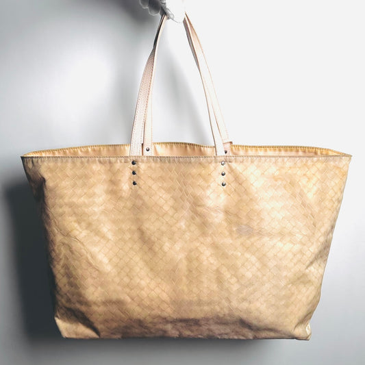 Bottega Veneta BV Cream Beige Intrecciato Intrecciomirage Printed Woven Fabric Shopper Shoulder Tote Bag