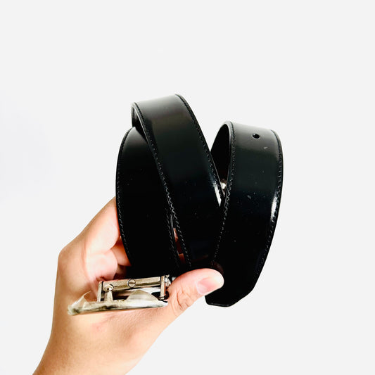 Gucci Black Smooth Leather Monogram Logo 38MM Belt
